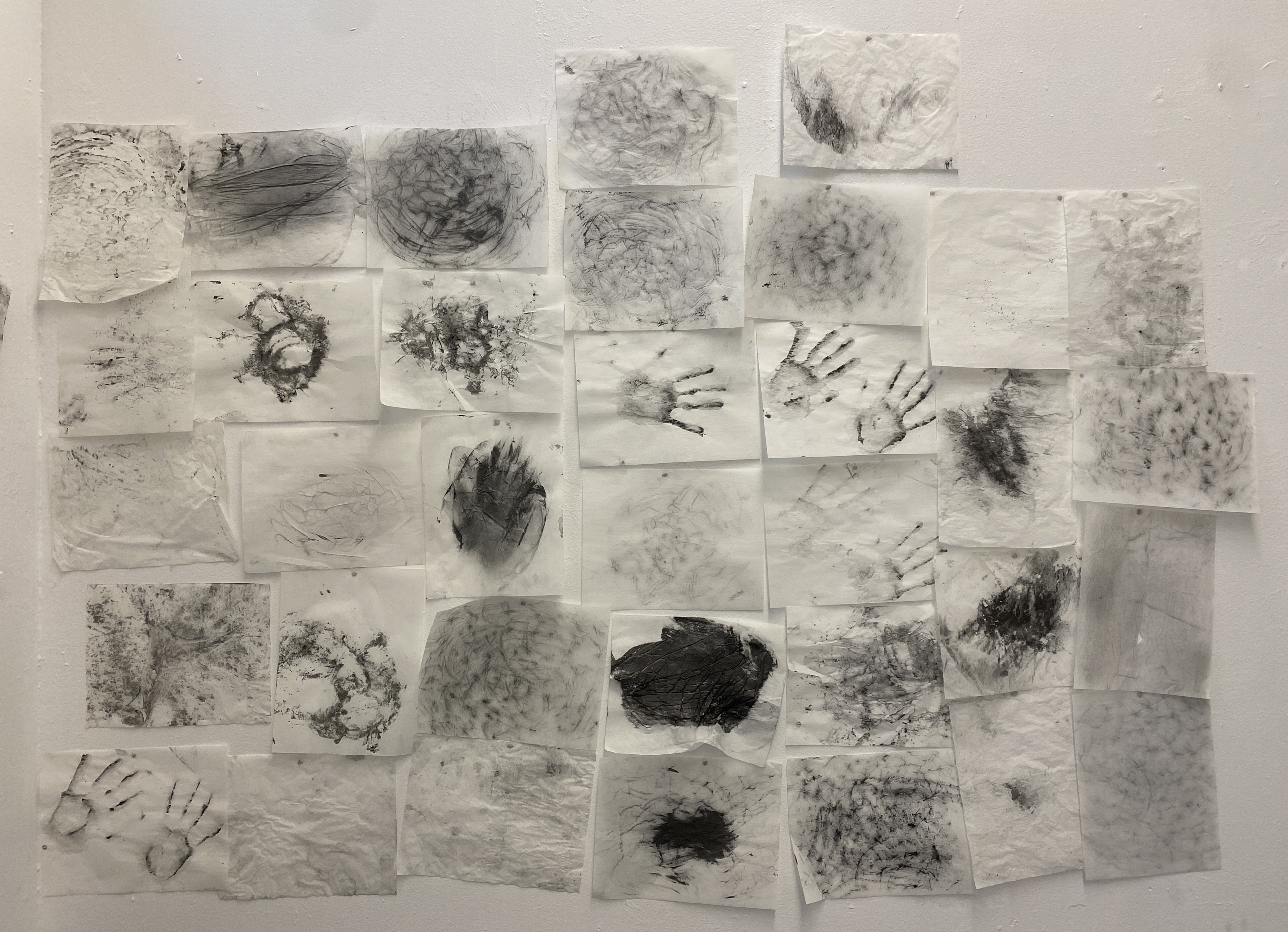 This new body of work documents a performance by my alter ego, capturing the fluidity of my interaction with graphite, water, and my own body. The work becomes a trace of existence, imprinting the entangled relationship between affect, materiality, and the human condition. Each piece records this ongoing dialogue between the self and the world around me, revealing both the vulnerability and strength inherent in the act of creation.